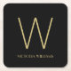 Modern svart guld-minimalistisk monogram namn underlägg papper kvadrat