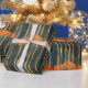 Modern svart guld-orange-abstrakt strimlad presentpapper