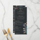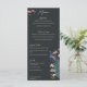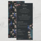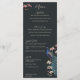 Denna vintageinspirerade moderna svarta handritade påfågels bröllopsmeny har skräddarsydda handritade illustrationer av en exotisk blå och turkos påfågel inklämd i ett frodigt arrangemang av Magnolia-grönska. Visa upp den livfulla kontrasten mellan krämfärgade och rosafärgade magnoliablommor, allt mot en modern, nästan svart bakgrund. Baksidan har ett koordinerande sömlöst blommigt och fågelmönster. Denna fullt redigerbara middagsmeny för bröllopsreceptionen är perfekt för ett fantasifullt trädgårds-, botaniskt eller exotiskt fågeltematiskt bröllop. Anpassa varje detalj, från brudens och brudgummens namn till din kompletta fyrkursmeny, inklusive aptitretare, huvudrätter, efterrätter