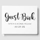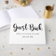 Modern bröllops-"Gästbok" har ett modernt svart-vit färgschema med fet och lekfull handskriven kalligrafi-skrift typografi med stilrena rullningsdetaljer. Anpassa den avslappnade men eleganta anpassade monogramtexten med brudens och brudgummens namn och bröllopsdatum.