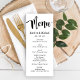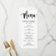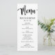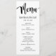 Modern bröllop-meny-kort har ett modernt svartvitt-färg-schema med fet och lekfull, handskriven calligraphy-skripttypografi med information om snyggtens rulla. Anpassa avslappnaden till monogram för elegant och anpassningsbar på middagsmenyn för bröllopsdagen.