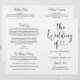 Moderna svart-vita bröllopsceremoniark program har en stilren svart typografidesign med chic kalligrafi skript och en hjärtaccent. Den enkla och eleganta anpassade texten kan anpassas för ditt bröllopssällskap, ceremoninformation och tackmeddelande. Obs: dessa textvikt papper program levereras platt och kräver vikning för att monteras.