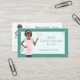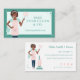 Modernt och professionellt visitkort för städservice med en vacker leende och vänlig afroamerikansk kvinna med en hand på höften och en hink med såpigt vatten och bubblor, och med den andra handen håller en rosa fjäderdammsugare. Damen bär en söt rosa randig förkläde med en mintgrön skjorta och jeans. Tvåtons grön ramdesign med hjärtram och gnistrande accenter. Anpassa med ditt företagsnamn, webbplats och monogram som placeras på förklädets ficka. Baksidan visar den vackra afroamerikanska damen med en dammsugare bredvid sig. Anpassa med ditt namn, jobbtitel, kontaktinformation och socialt handtag. Alla illustrationer är handritade originalkonstverk av Moodthology Papery.