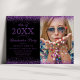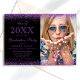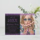 Modern svart lila glitter fotoutexaminering inbjudan. Denna eleganta design har trendig gnistrande konfetti. Anpassa denna anpassade design med dina egna detaljer och fotografi.