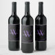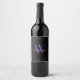 Modern Svart Lila Monogram Geometrisk Namnskrift Vinflaska Etikett