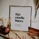 Denna moderna svarta ljusstaken brinner minnestavla är perfekt för ett enkelt bröllop. Den svart-vita minimalistiska designen har en retro men ändå samtida teckensnitt med en unik rustik bohemisk känsla. Perfekt för alla säsonger. Håll det minimalt, som det är, eller lägg till dina egna grafik och konstverk.