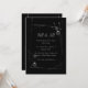 Meddela din speciella dag med djärv elegans med hjälp av denna "Modern Black Wedding-inbjudan med Abstrakt Silver Line Art". Den här eleganta designen har en djup svart bakgrund med metallisk abstrakt och geometriska accenter som skapar en dramatisk, contemporary estetisk bild. Den här inbjudan är perfekt för moderna bröllop, kvällsceremonier eller konstnärliga teman och är ett anpassade för att belysa din händelseinformation med sofistikering och känsla.