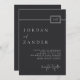 Inbjudan dina gäster i tidlös stil med den här moderna, svarta bröllopsinbjudan med elfenbenstext och en QR-kodmall på baksidan för att tillhandahålla webbadressen till bröllop. Med en slank minimalistisk layout, chic monogram initialer och elegant typografi anger den perfekten för firande. Fullt anpassade med namn, bröllop-datum och plats. Perfekt för contemporary bröllop under hela årstiden och särskilt trevligt för kvällens bröllop.
