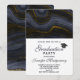 En inbjudan till studenten med en svart studentmössa och en vacker bild av mörkens abstrakt gör sten till en grym sten. Färg snurra i vågar. Färg är svart, blått grått med ett faux-guld-band som löper genom designen. Modern och trendiget.