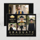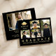 Fira din speciella högtid med tidlös elegans med denna moderna svarta och gyllene examensinbjudan. Med en lyxig mörk bakgrund med raffinerad gyllene typografi och flera alternativ för fotoutlägg visas dina graduates stolta ögonblick vackert.