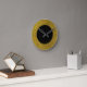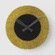 Lägg till lite glitter i inredningen i ditt hem med denna svarta och gyllene glitterväggklocka. Denna klocka har en svart mitt med en falsk guld kant. En chic klocka för den speciella personen.