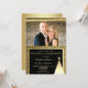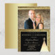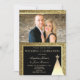 Enkel, modern, elegant, stilfull, svart och guld glitter julbröllopsinbjudan med foto.