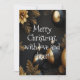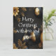 Önska varma höglidshelger med detta anpassningsbara moderna svarta och gyllene julkort. Med strålande gyllene dekorationer, omgivna av gyllene tallbarr och en gyllene blomma som accent, utstrålar denna design festlig elegans. Den svarta bakgrunden förstärker designens lyxiga charm.