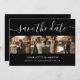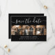 Anpassningsbarnas moderna svarta och vita bröllop-fotokollage sparar datumkorten med 4 bilder och ett modernt skript. Anpassa enkelt den här snyggtens foto till bröllop spara datum med information om bilder och bröllop, inklusive en webbplats för bröllop. Matchande objekt är tillgängliga. Anpassningsbarna begär välkomnande.