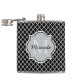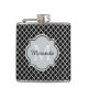 Tillsätt en sofistikerad modern vib till din personliga stil med det här trendiget svartvit quatrefoil mönster 6 oz-kolv med en snyggt monterad monogram. Anpassa snyggtens design genom att lägga till ditt namn och inledande monogrammet.