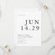 Lägg märke till din stora dag med tidlös elegans med hjälp av det här moderna svarta och vita sparar datumkortet. Den minimalistiska utformningen och den feta typografin skapar ett rent, snyggt utseende som anger tonen för det kommande firande. Perfekt för par som uppskattar enkelhet med sofistikering, så säkerställer det här kortet att dina gäster markerar sina kalendrar i stil.