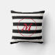 Modern svart och vit randig med Monogram Kudde