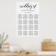 Modern och chic svart och vit bröllopsbordplaneringsaffisch med en stilren svart typografisk design med djärva kalligrafiska accenter och elegant anpassad text som kan anpassas med ett monogram med brudens och brudgummens namn, gästernas namn organiserade efter deras tilldelade bordnummer.