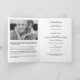 Modern begravning med två svarta och vita foton (foton från färg visas i svartvitt) av din älskade, en kort biografi (eller annan text), begravningsprogrammet och en dikt eller ett citat (eller annan text). All text är helt anpassade. Om du behöver hjälp med att anpassa det här, så meddela mig och jag är lycklig för att hjälpa till.