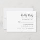 Det här enkla, moderna kortet för hölje i bröllop OSA har svart text på vit bakgrund. Rubriken visas i snyggtens handskriftsgrafi. Anpassa återstående text i sans serif-teckensnitt. Den omvända sidan är helsvart.