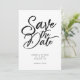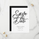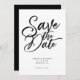 Grattisar på din förlovning! Tryck på gästerna med den här eleganten och spara datummallskortet. Den här designen har en svart och vit minimalistisk design med ett typsnitt för typografi i mitten som säger "spara datumet". Anpassa den här produkten genom att lägga till din egen bröllop-info.