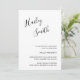 Ett kort för svartvit studenten-meddelande med student namn i ett handskript längst upp till lämnat längs med och närmare uppgifter om studenten i höger vid högerna i grund. Den chic handskriften gör att eleganten blir ännu tydligare i denna moderna och minimalistiska utformning.