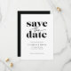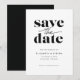 Den här snyggten sparar datumkortet med orden "spara datumet" skrivet i en blandning av serif och script typsnitt och har gott om utrymme för namn samt datum och plats för bröllop i klassiskt svartvitt.