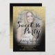 En modern duschmunk i söt faux guld glitter med svart färg block Sweet 16 födelsedagsfest inbjudan med din anpassningsbar foto med guld ombre mönster tonad mot svart bakgrund. Perfekt för en prinsessa Sweet sixteen, perfekt för henne, den på modet som kärlek modererar mönster och glam