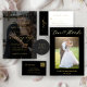 Modern svart övertäckningsfoto guld bröllop inbjudningar