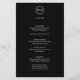 Den här enkla men ändå elegant-menyn har en modern monogramdesign i svart. Lägg till anpassningsbarna med hjälp av mallformuläret. Använda de avancerade redigeringsmenyer som du kommer åt genom att välja "anpassa ytterligare" grund i mallen för att ändra färg, teckensnitt och layout.