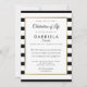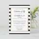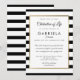 Med en klassisk svart-vit randig bakgrund har denna inbjudan till begravning för firande av livet ett elegant falskt guldfolieband som ramar in detaljerna i chic typografi. Designad av Thisisnotme