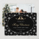 Elegant svart, vit och guld fotobutik julkort med renar och vintergrönska i en snöflinga ram. Ett vackert script teckensnitt används för att lägga till en mer festlig utseende på detta vykort. Personifiera enkelt detta julkort med ditt foto och text.