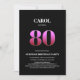 Inbjudan dina vänner och närstående till en överraskande 80-årsfirande med den här snyggten minimalistsvart och rosa födelsedagsfest inbjudan.