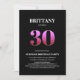 Bjud in dina vänner och nära och kära till en överraskningsfest för 30-årsdagen med denna stilrena minimalistiska svarta och rosa födelsedagsinbjudan.