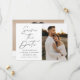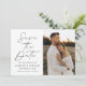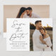 Meddela ditt kommande bröllop i stil med det här trendiget Spara datumkortet med Modern Black Script-fotot! Designfunktionerna "Spara datum" som visas i trendigets svarta kalligrafi. Anpassa framsidan av minimalisten spara datumet med förlovningen namn, bröllop, plats och lodrät. Kortets baksida visningar ett vågrät foto med bröllop webbplats som visas nedan. Chicen svart och vitt sparar datumet för valet av perfekt för det moderna bröllop.