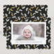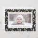 Skicka semesterhälsningar med anpassade och personlig till vänner, kolleger och familj i enkla, minimalistiska, elegant, roligt, festliga och moderna fotokort! Ett vackert ram av olika guld och vitt jultomte Mistletoe Gräs Träd lämnar på svart bakgrund omger ditt foto på rund scallop kant papper. Anpassningsbarna hälsning "God jul och din familj namn har modern typografi. Reverse för att visa en vacker bakgrund i fullt jultomten Mistletoe Gräs Träd lämnar mönster.