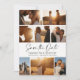 Den här eleganta och snyggt-spara-till-datum-kortet har en ren 8-fotokollage-layout med svart elegant-calligrafi över en skarp vit bakgrund. Perfekt för par som vill belysa sina favoritögonblick i förlovningen i en modern, fotofokuserad design. På baksidan finns information om matchande typografi och bröllop. Perfekt för sommartid bröllop, vinodlingsplatser eller chic City firande.