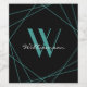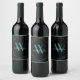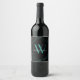Modern svart teal monogramnamn skript geometrisk vinflaska etikett