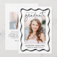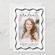 Fira din milstolpe med det här Modern Black Vågigt Ram studenten, med ett elegant och snyggt. På framsidan visas ett foto av lodrät student som är inramat av ett svart vågigt gräns, där "Student" elegant visas i ett handskrivet svart skript på en skarp vit bakgrund. Anpassa den med ditt namn, studenten-år och skola för en unik beröring. Baksidan av meddelandet visar ett foto med vågrät med utrymme för ett anpassningsbar-meddelande, vilket gör att du kan din upphetsning och dina framtida planer. Perfekt för high school och College student, denna moderna och tidlösa utformning gör en minnesvärd keepé för familj och vänner.