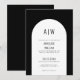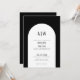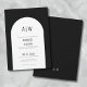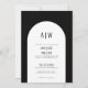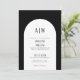 Enkel Modern Båge Monogram Svart Vit Bröllopsinbjudan. En minimalistisk bröllopsinbjudan med en mycket enkel båge och snygga enkla typsnitt. Ett monogram högst upp och på baksidan för parets initialer. Du kan anpassa denna inbjudan till valfri färg. Det finns en andra "båge" om du vill lägga till en accentlinje till bågen. Använd bara de allra nedersta "oval"- och "fyrkant"-elementen i listan för att ändra dessa färger.