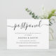 Meddela fördröjningen av ditt bröllop med detta minimalistiska svart-vita kort med ett modernt typsnitt.