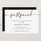 Meddela förseningen av ditt bröllop med detta minimalistiska svart-vita kort med ett modernt skript-teckensnitt.
