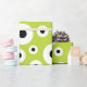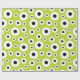 Mönster med svarta och vita koncentriska cirklar på en ljus limegrön bakgrund som skapar en lekfull, slående och modern visuell effekt.