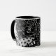 Modern svart-vit dekorativt fantasifullt fiskmönstrat mugg av Julie Nicholls©.
