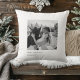 Lägg till en touch av elegans till din semesterdekoration med denna moderna svarta och vita fotokudde.