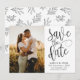 Detta är en unik och modern fotomall för magnetisk spara-datum-inbjudan med utrymme för ditt favoritparfoto med unik "spara datum"-kaligrafi. Botaniska element på baksidan för en enkel och sofistikerad naturlig touch. Ett bra sätt att låta din familj och vänner veta om din kommande bröllopsfest. Anpassa med dina namn, foto och bröllopsdetaljer.