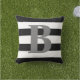 Designat med djärva svartvita randar bekläda och dra tillbaka på av kudder och beklär sidan har på det stora grå färgmonogrambrev att centrera.