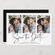 Modern handskriven Spara datumfoto-kortet Många i svartvitt i ett typsnitt som är elegant och framkallar en romantisk handskriven känsla. Designad för använda av tre av dina favoritfoton för ytterligare anpassning. Lägg enkelt till namn och data för en verkligt personlig. Kontakta oss på cedarandstring@gmail.com om du behöver hjälp med designen eller matchande produkter.