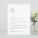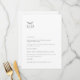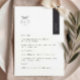 Detta är en modern vit och svart bröllopsmeny som kommer att tillföra en touch av elegans till din bröllopsfestdekor. All text är redigerbar, klicka bara på "Personifiera denna mall". Matchande föremål som platskort, bordskort och bröllopsskyltar finns också tillgängliga.