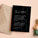 Uttryck din tacksamhet med tidlös elegans genom det moderna svart-vita monogram-minimalistiska bröllopskortet, designat för par som uppskattar raffinerad enkelhet och meningsfulla detaljer. Med en sofistikerad svart-vit färgpalett och ett stilrent monogram som framhäver parets initialer, skapar detta tackkort ett polerat och personligt sätt att visa uppskattning till familj och vänner som delade er speciella dag. Den rena minimalistiska layouten håller fokus på ditt hjärtliga budskap samtidigt som den bibehåller en modern och elegant estetik som kompletterar en koordinerad bröllopsbrevpapperssvit. Perfekt för moderna, klassiska eller formella bröllopsteman, tillför detta tackkort en genomtänkt slutlig touch till din fest genom att låta dig skicka varma tack i ett vackert designat format. Dess tidlösa stil, personliga monogramdetalj och underdrivna sofistikation gör det till ett minnesvärt sätt att tacka dina gäster och